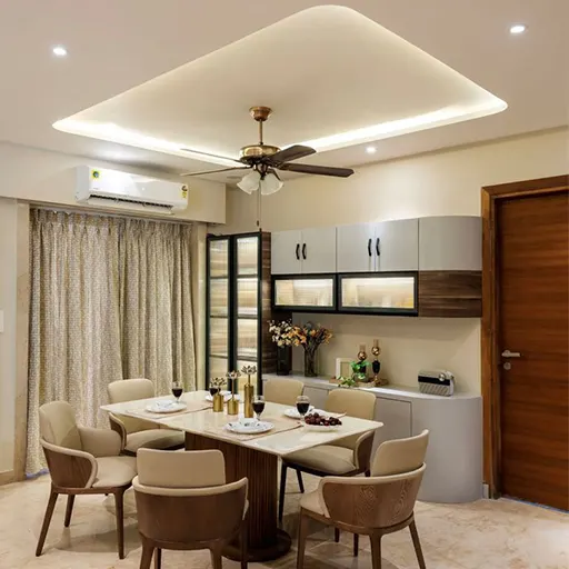 Create an illusion of height and space with a false ceiling. Whether it’s a simple recessed design, a coffered ceiling, or a contemporary suspended installation, these false ceilings add architectural interest and drama to your living room while concealing unsightly wiring and fixtures. With customizable lighting options and premium finishes, our false ceilings elevate your living space to new heights of elegance and luxury.
