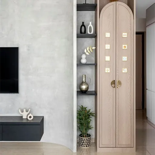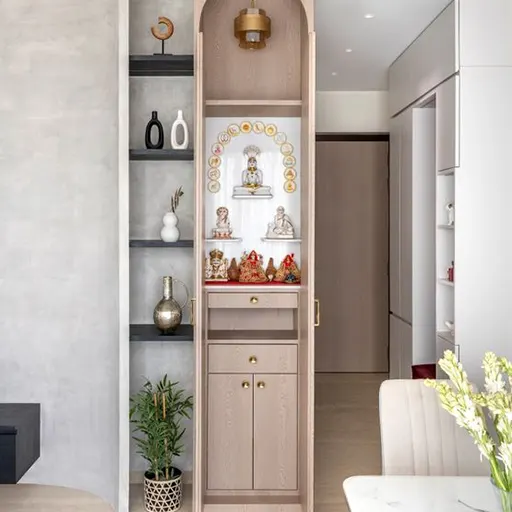 The door of the pooja unit can be customized according to the client’s preference. Whether it’s a traditional wooden door for a timeless look or a contemporary glass door for a modern aesthetic, we offer options to suit every style and taste.
